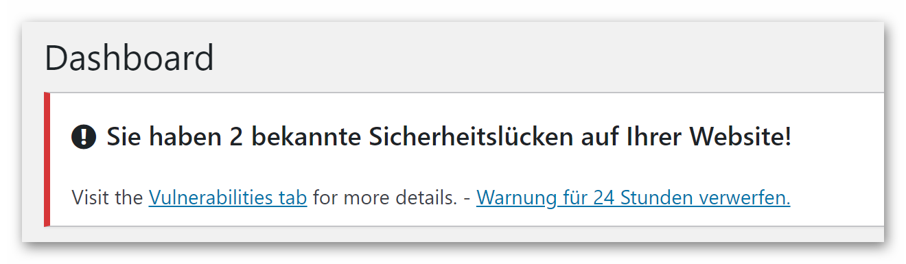 Das nützliche Plugin „Security Ninja“ hat auf einer Website folgenden Hinweis angezeigt: