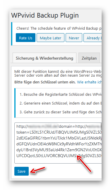 …wechseln wieder zur Quellwebsite, fügen den Schlüssel im gezeigten Feld ein und klicken auf den blauen Button: