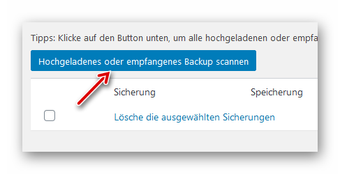 …und dann den Backup-Ordner (auf der Zielwebsite) mit Klick auf den blauen Button scannen: