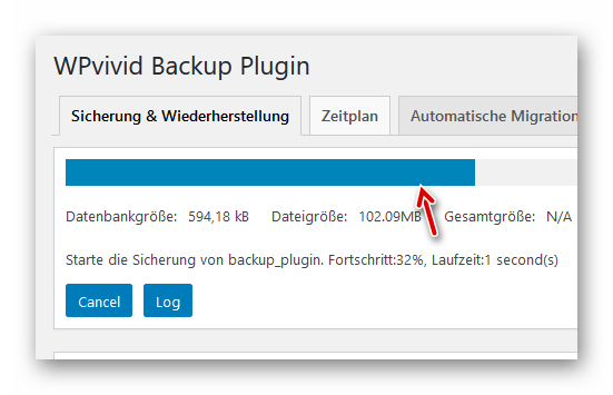 Die Datensicherung läuft und je nach Größe des Backups dauert es ein wenig, bis der Fortschrittsbalken zum rechten Rand kommt: