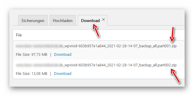 Das Backup kann auch aus mehreren Datein bestehen, welche alle heruntergeladen werden müssen: