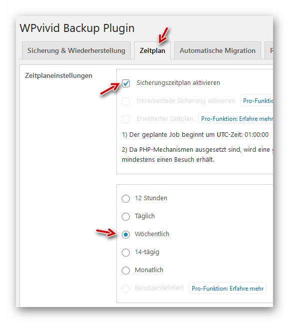 Als nächstes geben wir einen Zeitplan (z. B. wöchentlich) mit Klick auf den gezeigten Button ein: