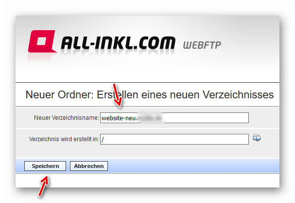 …und geben im Feld “Webspace” den Namen des neuen Root-Verzeichnisses an: