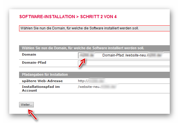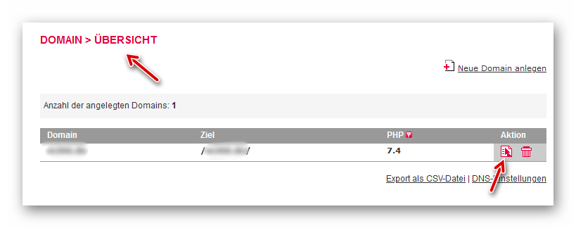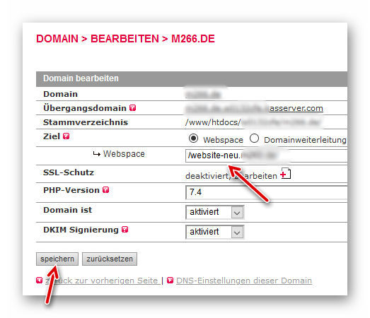 Nun bearbeiten wir die Domain der Ziel-Website…