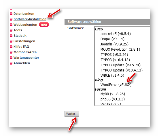 WordPress wird jetzt im neuen Root-Verzeichnis installiert: