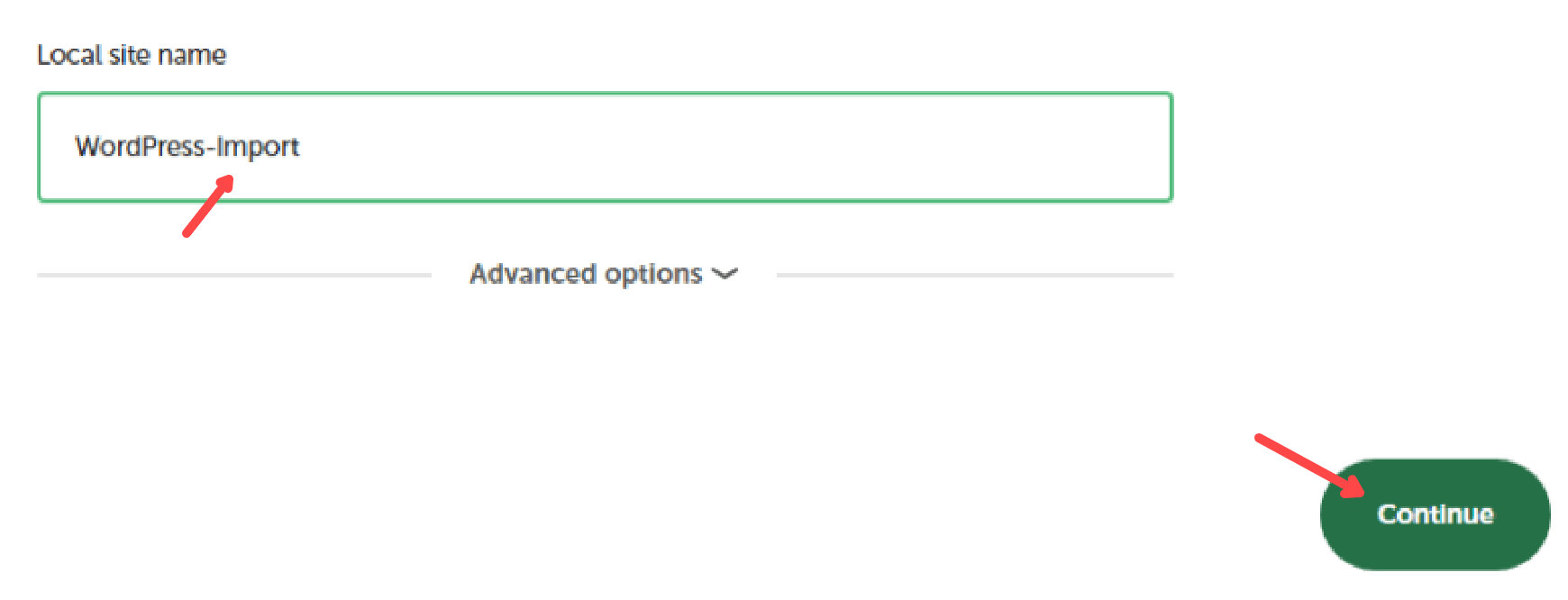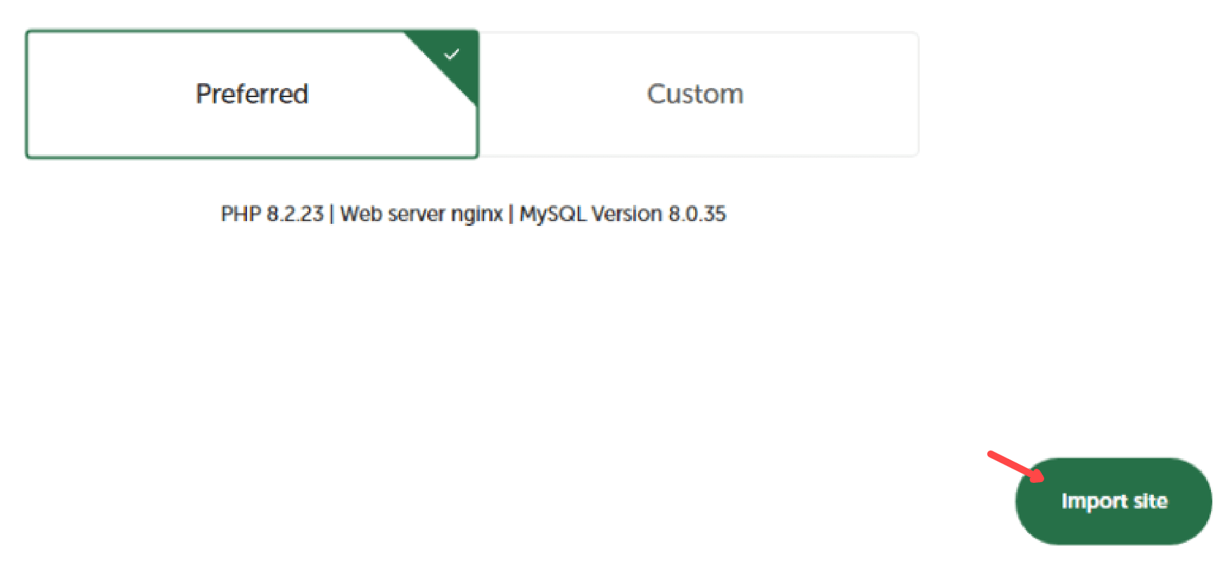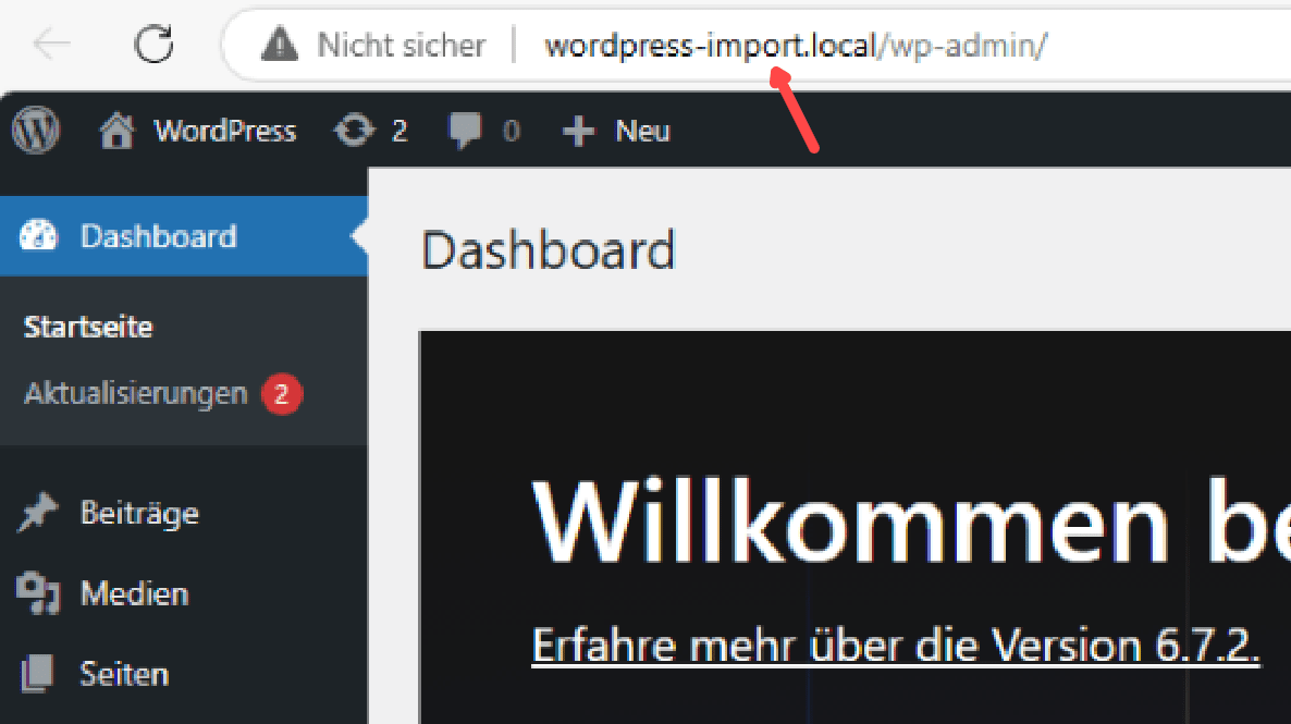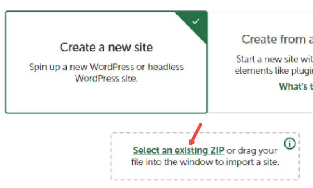 Den Button „Import site“ anklicken:
