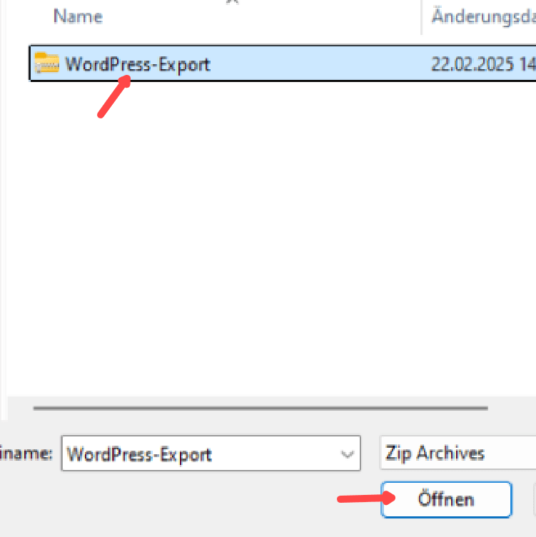 Die erhaltene Export-Datei wird ausgewählt und geöffnet: