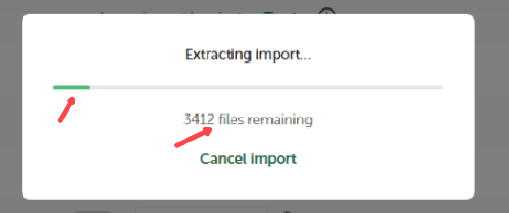 Das Entpacken hat begonnen und dauert je nach Größe der Website einige Minuten: