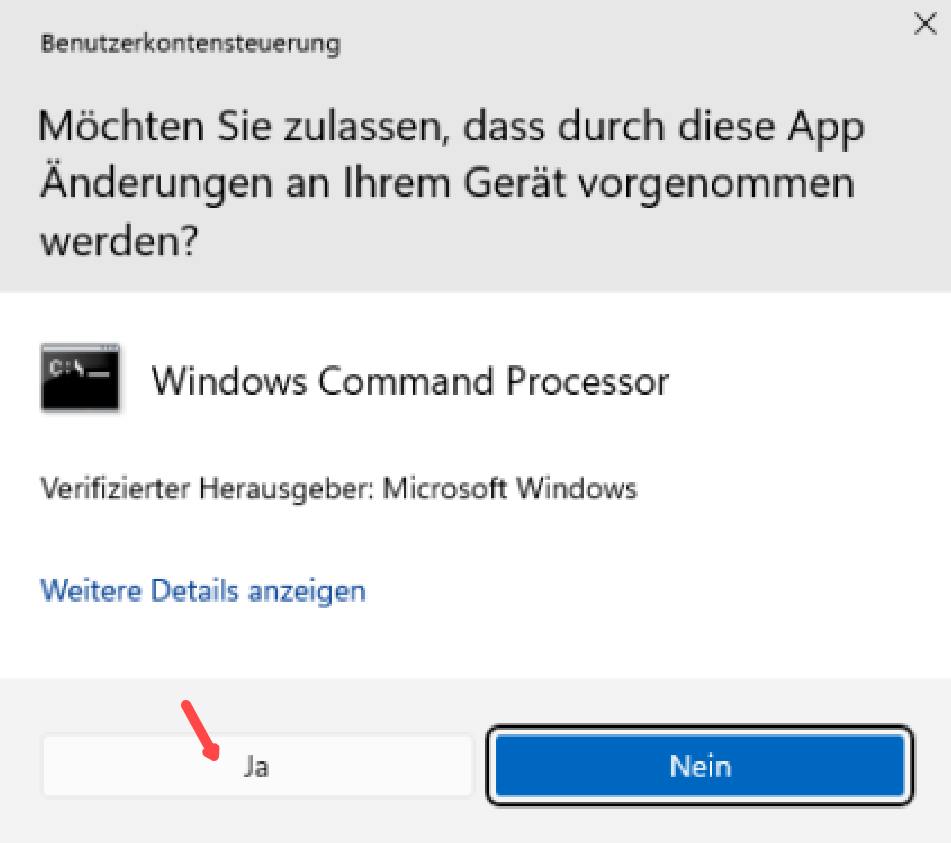 Auf „Ja“ klicken: