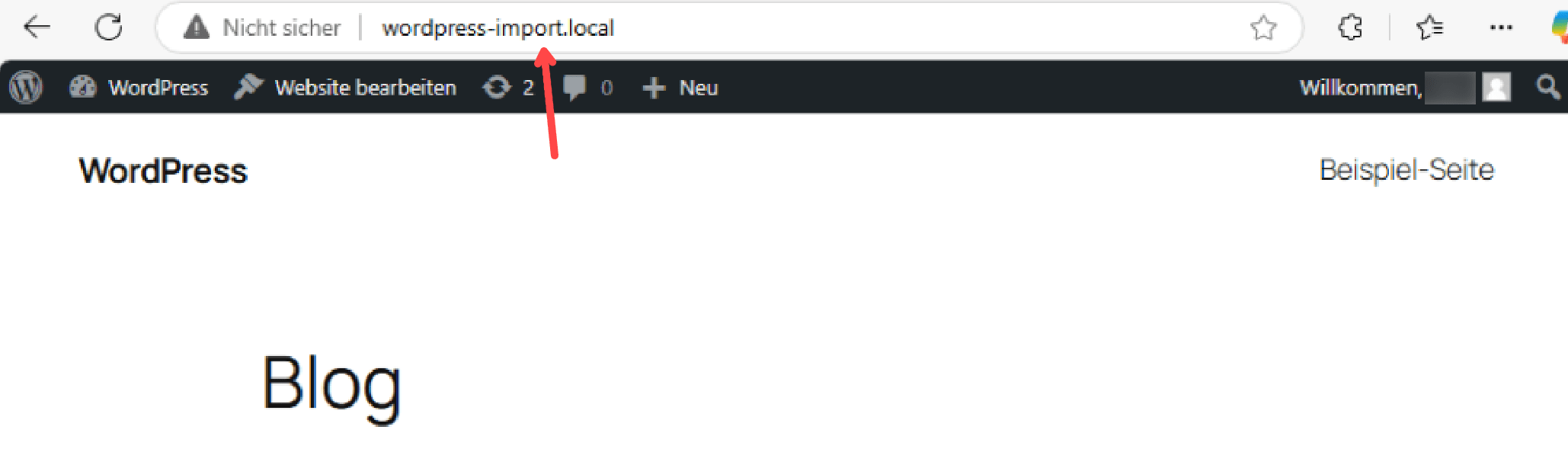 Im Frontend wird die importierte Website ebenfalls korrekt angezeigt: