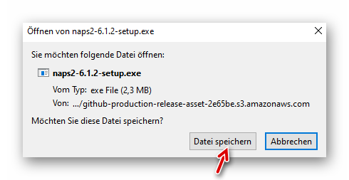 Auf den Button “Datei speichern” klicken und danach das Programm installieren: