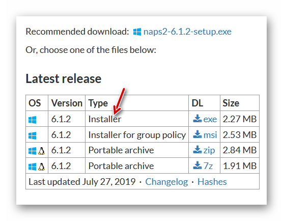 Die aktuelle installierbare Version kann direkt auf der Startseite durch Klick auf den gezeigten Link heruntergeladen werden: