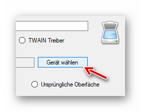 Der gewünschte Scanner wird ausgewählt (muss vorher mit dem Rechner verbunden sein):