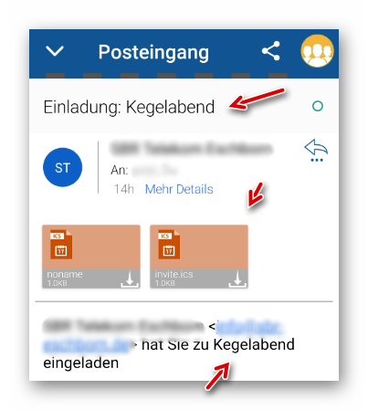 …klicken wir auf die Anlage “invite.ics”: