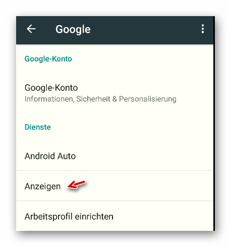 Auf dem Smartphone (Beispiel Huawei) klicken wir auf Einstellungen und dann auf “Google”: