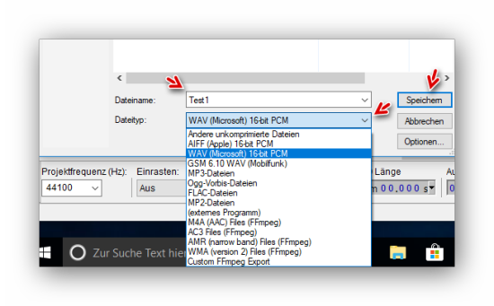 einen Dateinamen eingeben und das gewünschte Dateiformat auswählen. Dann auf “Speichern” klicken:
