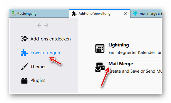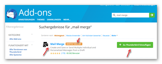 Das Add-on wird in Thunderbird gesucht und installiert: