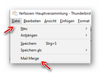 Danach auf Datei -> Mail Merge klicken:
