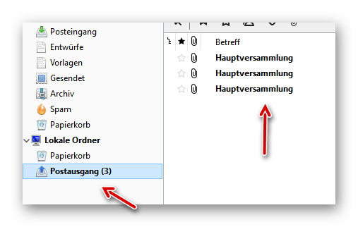 Die zu sendenden E-Mails liegen nun zur Überprüfung im Postausgang: