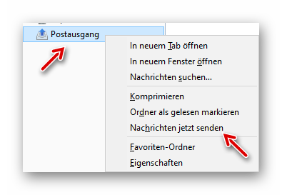 Wenn alles OK ist, klicken wir mit der rechten Mautaste auf Postausgang und wählen “Nachrichten jetzt senden”:
