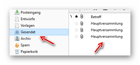 Anschließend kopiert Thunderbird die E-Mails nach dem Versand in den Ordner “Gesendet”: