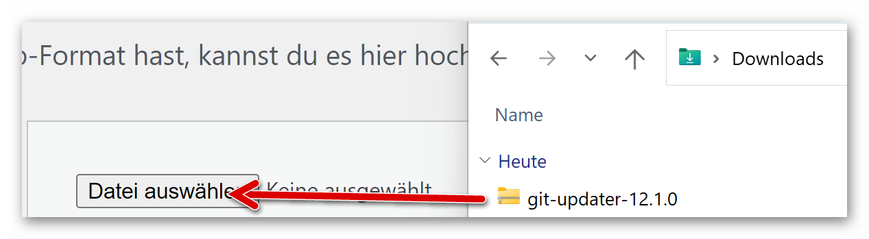 …und ziehen die zuvor heruntergeladene ZIP-Datei auf den gezeigten Button: