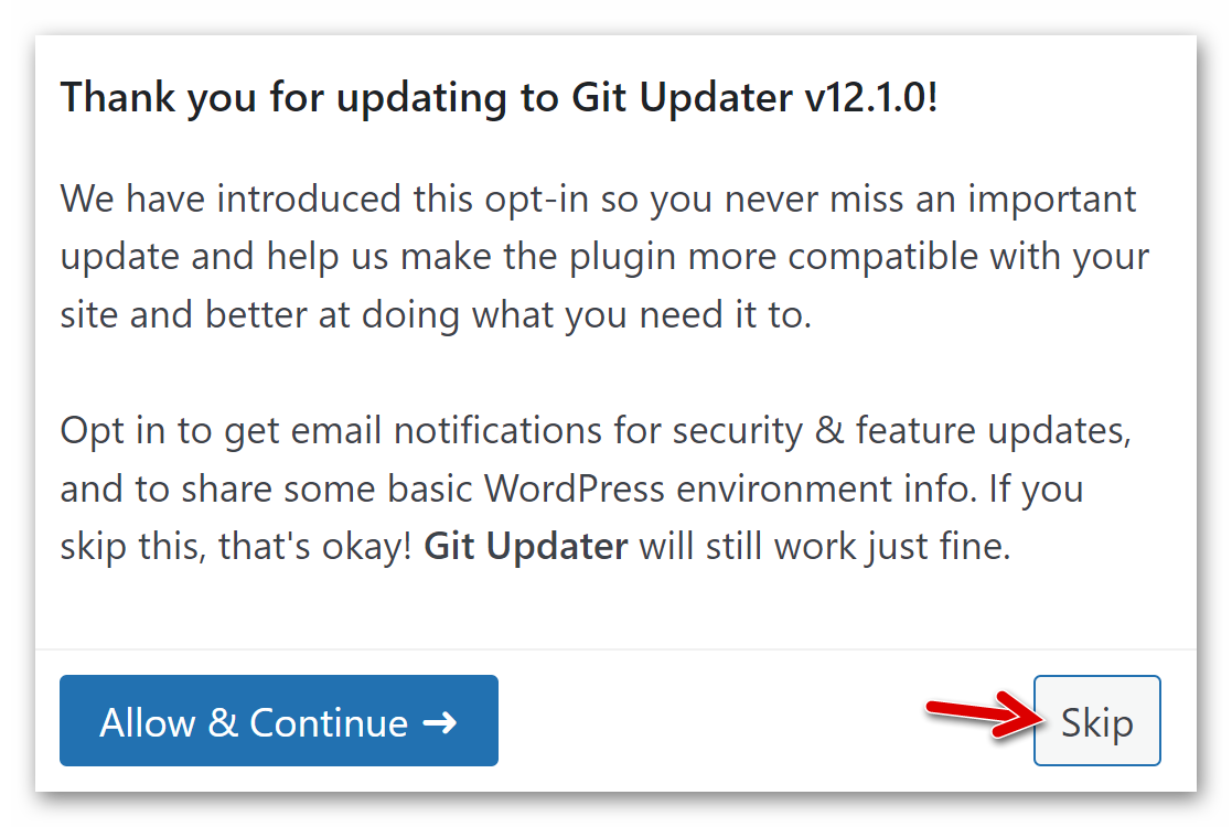 Damit ist die Installation des Plugin „Git Updater“ abgeschlossen.