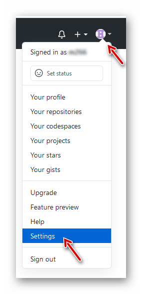 Die sogenannte „Branch“ muss korrekt für die Zusammenarbeit mit dem „Git Updater“ eingerichtet sein. Ansonsten werden keine Updates bereit gestellt. Wir klicken nach Einloggen in GitHub rechts oben auf das gezeigte Symbol und dann auf „Settings“: