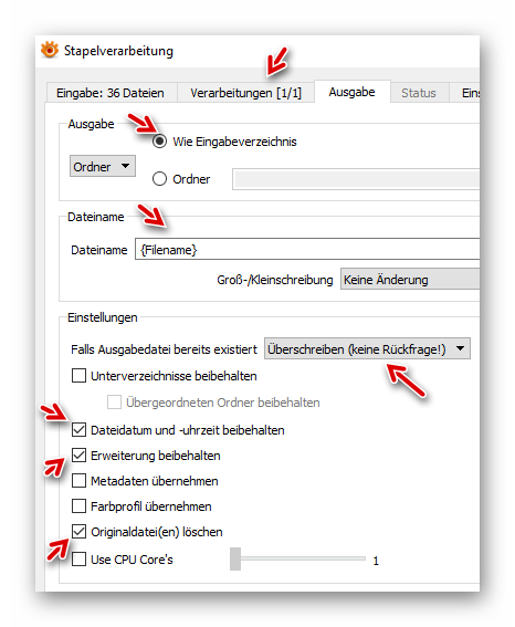 Vor Beginn der Konvertierung den Ordner mit den Bildern sicherheitshalber kopieren und nur mit dieser Kopie arbeiten!