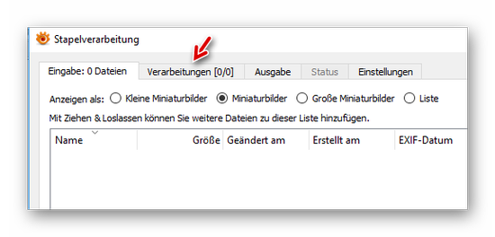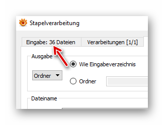 Dann die Verarbeitung starten: