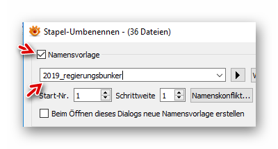 Einen Namen für die Vorlage zur Umbenennung eingeben: