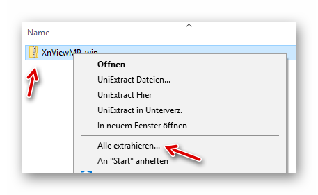 Danach mit der rechten Maustaste auf die ZIP-Datei klicken und den Unterpunkt “Alles extrahieren” auswählen: