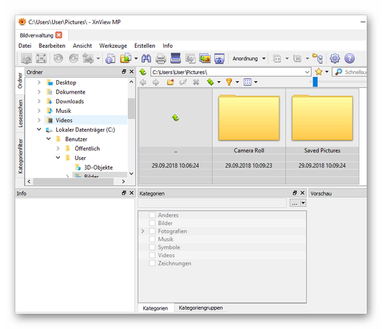 …öffnet sich die Benutzeroberfläche von XnView MP mit den Standardeinstellungen: