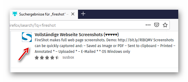 Wir suchen und installieren FireShot: