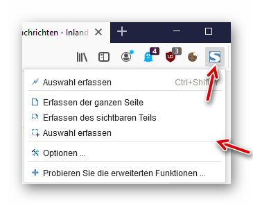 Im Firefox ist rechts oben das neue Symbol “S” zu sehen. Wir klicken darauf…