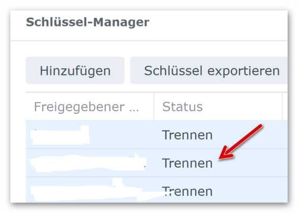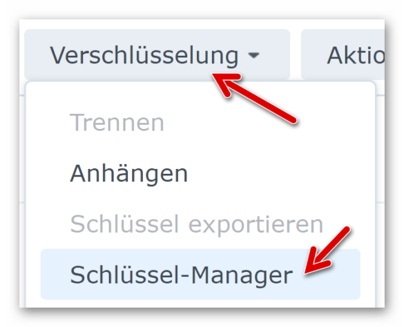 Zur Freigabe klicken wir auf Verschlüsselung -> Schlüssel-Manager…