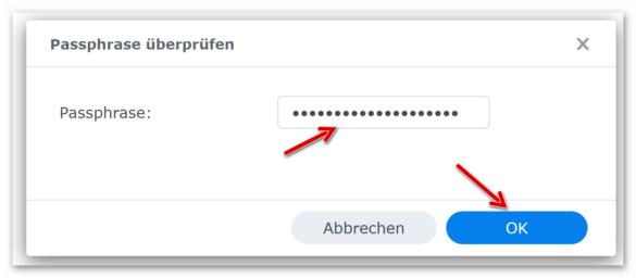 Nach einem Neustart (Reboot), z. B. notwendig beim Update der DSM-Version, wird das NAS-Laufwerk wieder hochgefahren. Aus Sicherheitsgründen sind dann die (verschlüsselten) freigegebenen Ordner getrennt und nicht mehr verfügbar. Solche Ordner können u. a. Backups von Websites enthalten und das nächste Backup bricht dann mit einer Fehlermeldung ab.
