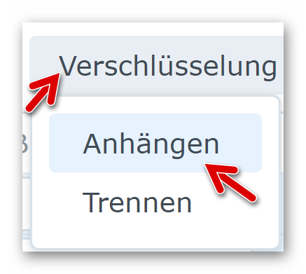 Wir markieren alle betreffenden Ordner auf einmal und klicken dann auf Verschlüsselung -> Anhängen: