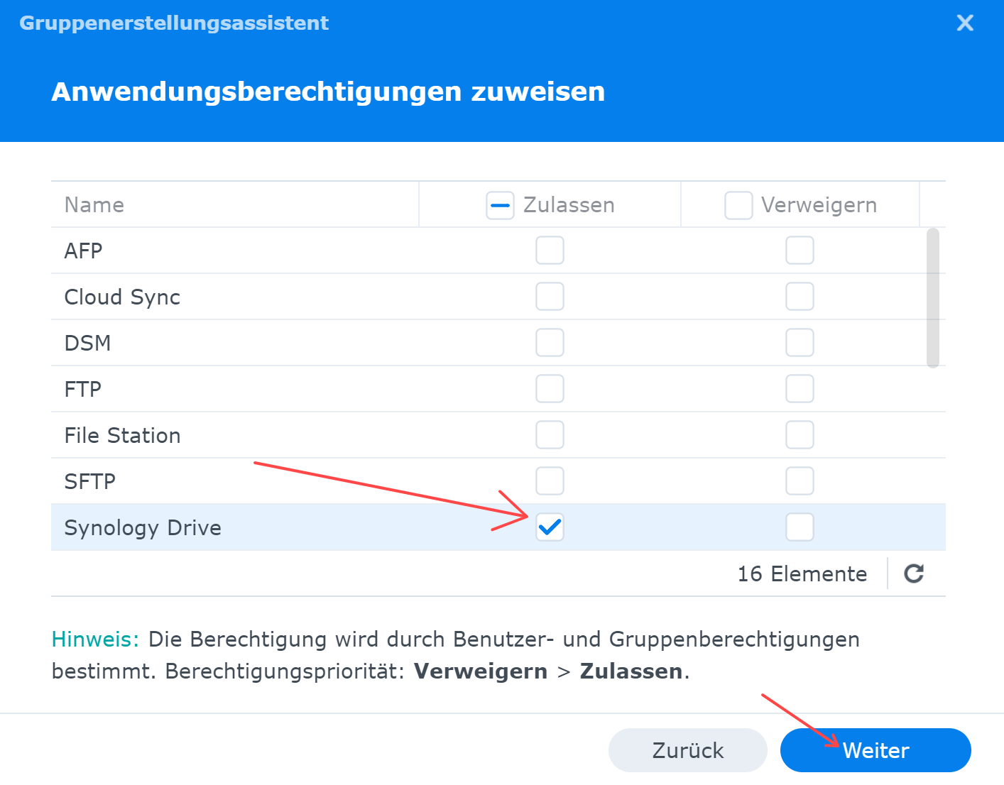 Benutzergruppe anlegen Start Tutorials NAS Synology Synology Drive Benutzergruppe anlegen Die folgenden Einstellungen vornehmen: