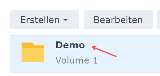 Dann auf „Erstellen“ und einen Ordnernamen wählen (hier im Beispiel „Demo“):