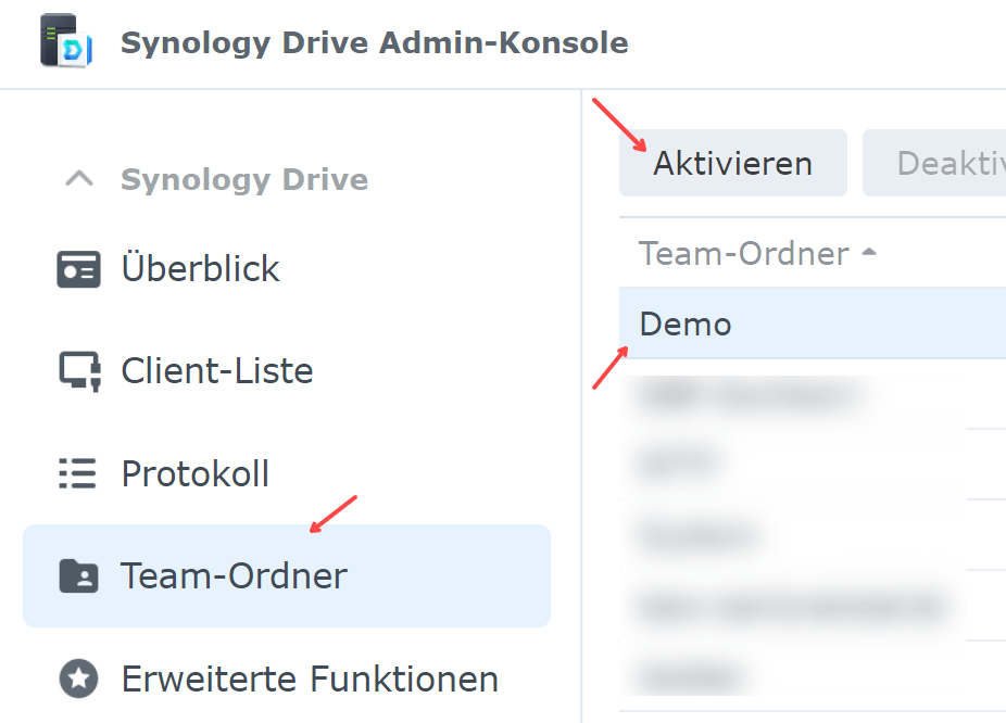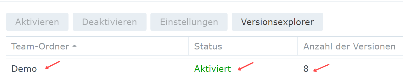 Der Team-Ordner „Demo“ ist nun aktiviert.