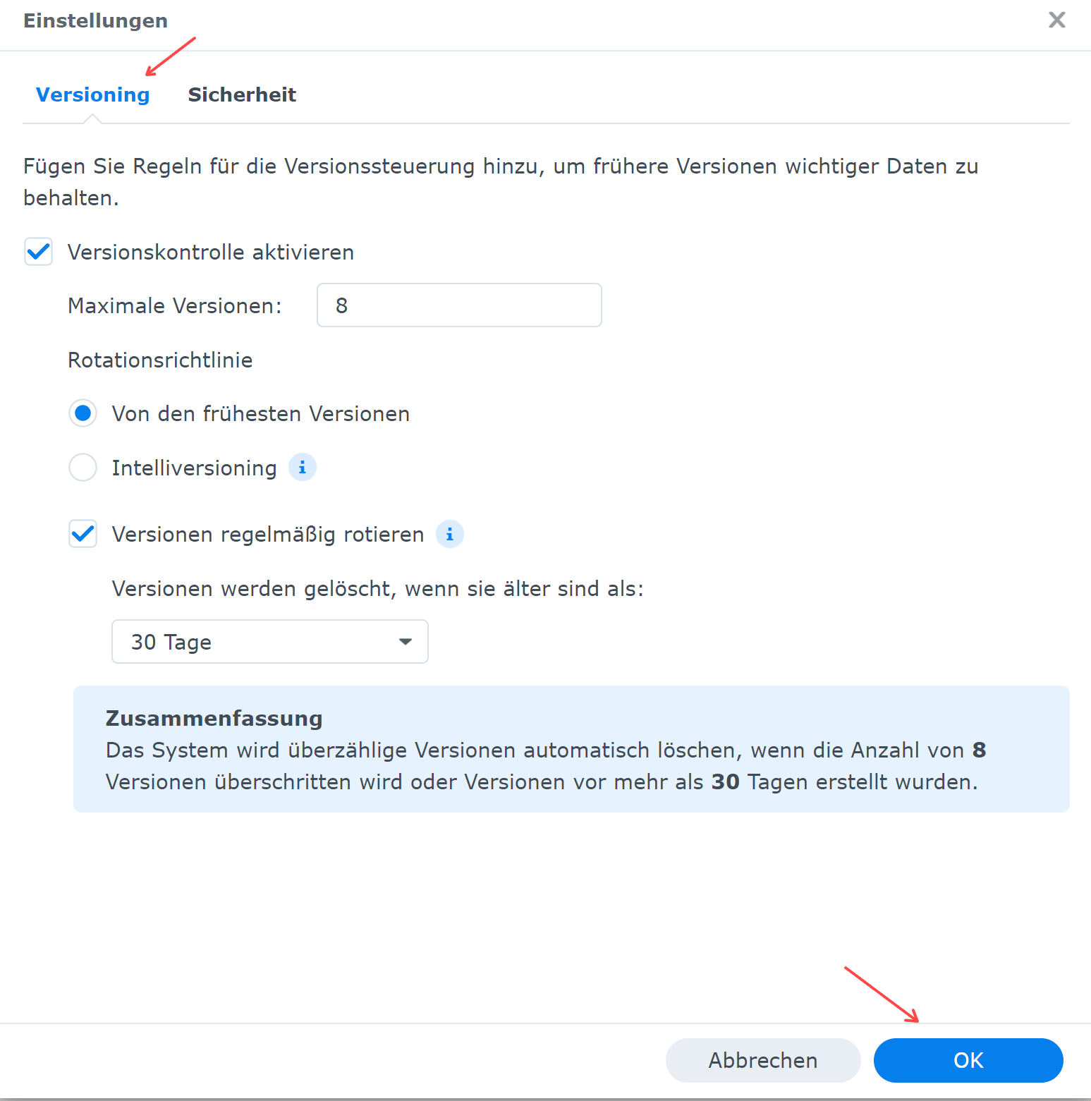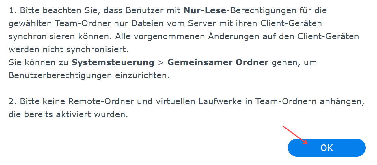 Wir loggen uns in Synology ein und klicken auf die „Synology Drive Admin-Konsole“. Dann die nachfolgenden Einstellungen vornehmen:
