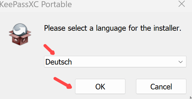 Die Sprache bei Bedarf auf „Deutsch“ stellen und OK klicken: