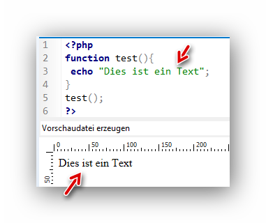 Dieser PHP-Code erzeugt eine Textausgabe (Inhalt von echo wird angezeigt):