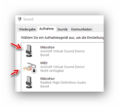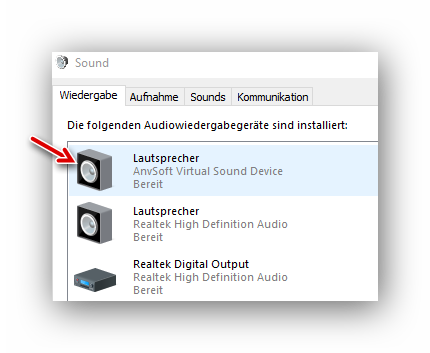 Nach dem Download und der Installation des Programmes sind drei weitere Audio-Geräte in der Sound-Konfiguration zu sehen: