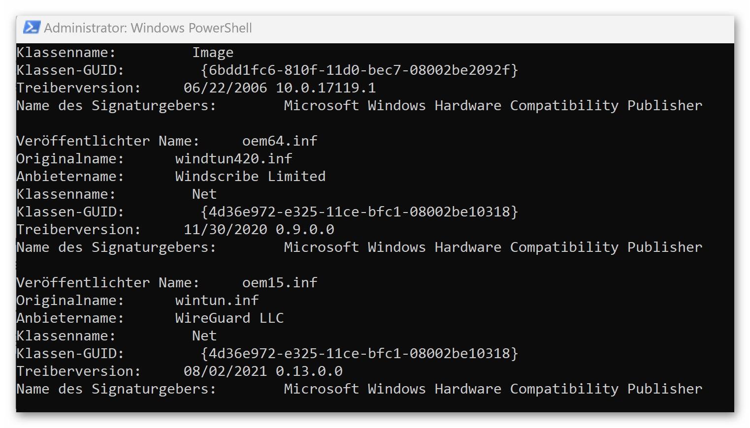 Nun werden die Treiber aufgelistet und wir überprüfen, ob die gesuchten Treiber dabei sind:
