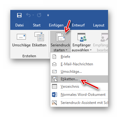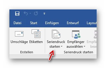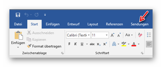 Wir erstellen ein leeres Word-Dokument und klicken auf “Sendungen”: