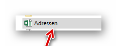 Im Windows-Explorer wird die richtige Datei (im Beispiel “Adressen”) gesucht und durch Doppelklick aktiviert:
