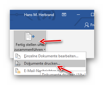 Nun auf den gezeigten Button klicken und “Dokumente drucken” auswählen: