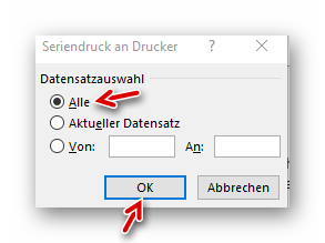 Für diesenTest (nur 4 Adressen) belassen wir die Voreinstellungen und klicken auf OK: